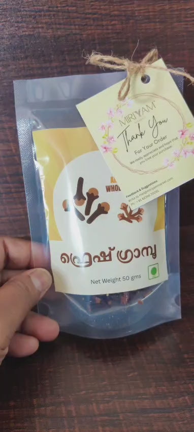 ഗ്രാമ്പൂ (ലൗംഗ്) ശക്തമായ സുഗന്ധവും ചൂടുള്ള രുചിയും നൽകുന്ന ഒരു പ്രധാന മസാലയാണ്. പ്രകൃതിദത്തമായി ഉണക്കിയ, ശ്രദ്ധാപൂർവം തിരഞ്ഞെടുത്ത ഞങ്ങളുടെ പ്രീമിയം ഗ്രാമ്പൂ, ദൈനംദിന പാചകത്തിനും മസാല ചായയ്ക്കും ഉത്തമമാണ്.